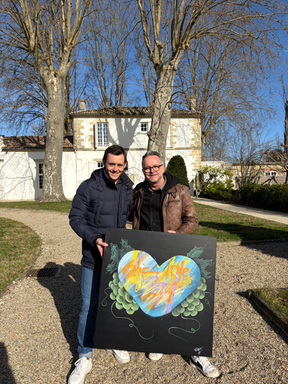 Ensemble, nous avons lancé un jeu concours ouvert à tous pour créer l’étiquette d’une cuvée spéciale : la Cuvée Timéo. Chaque participant a proposé une interprétation artistique autour des valeurs de cœur, de solidarité et d’espoir.